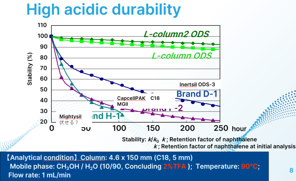 *L-column 2 has high acid durability. This allows the same column to be used for longer periods of