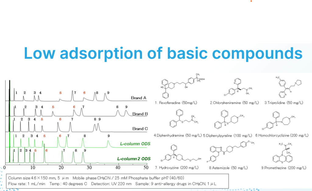 *The absorptivity of basic and coordinating compounds decreases. This improves the peak shape and is very effective in quantitative and qualitative analysis.